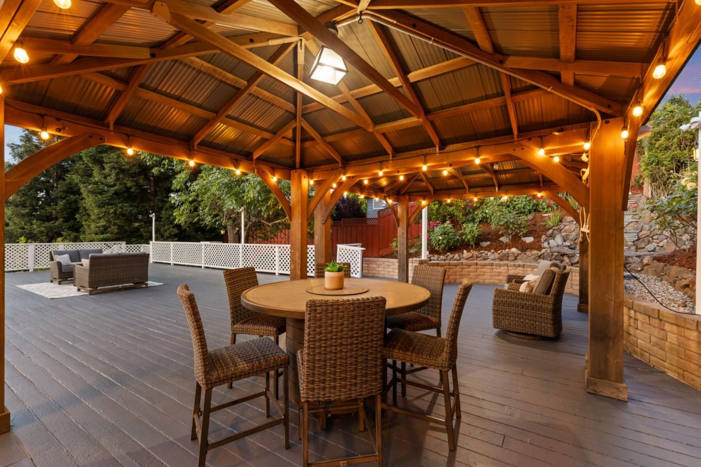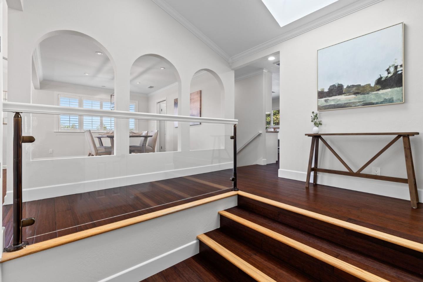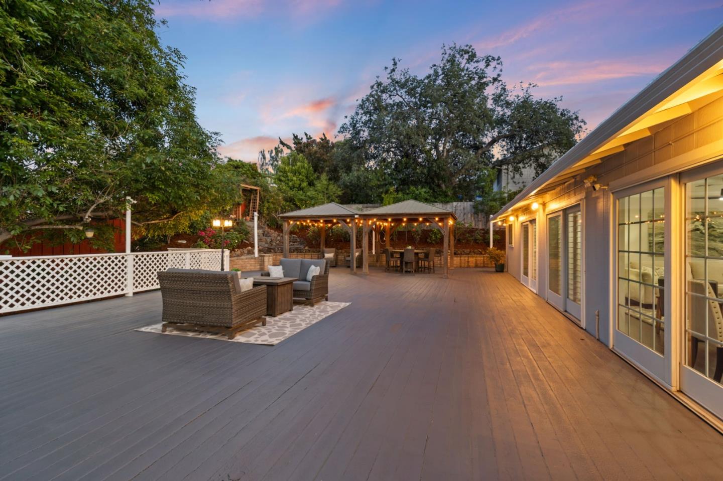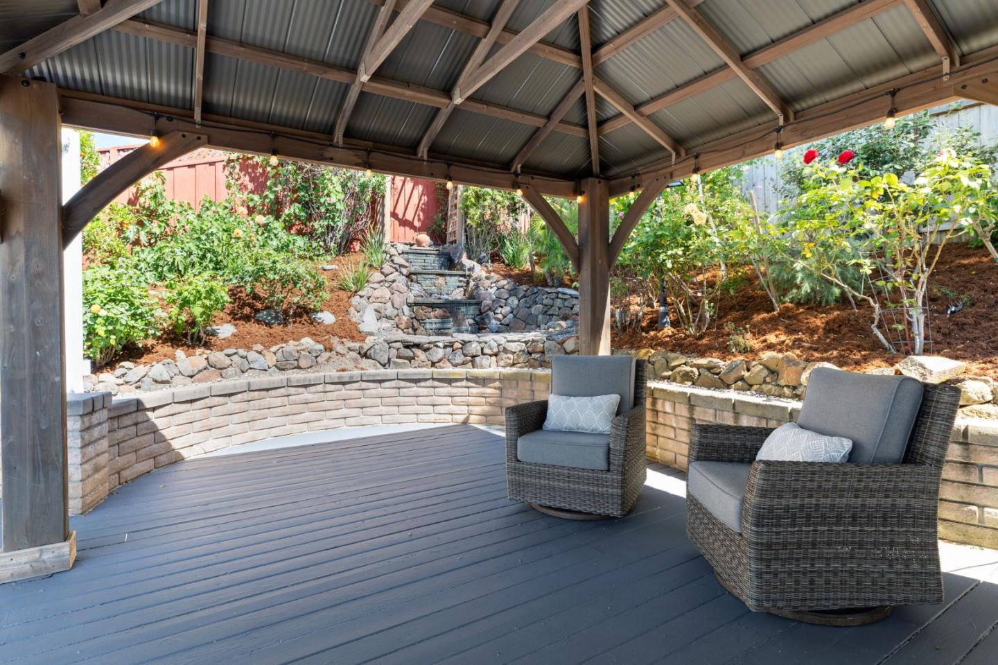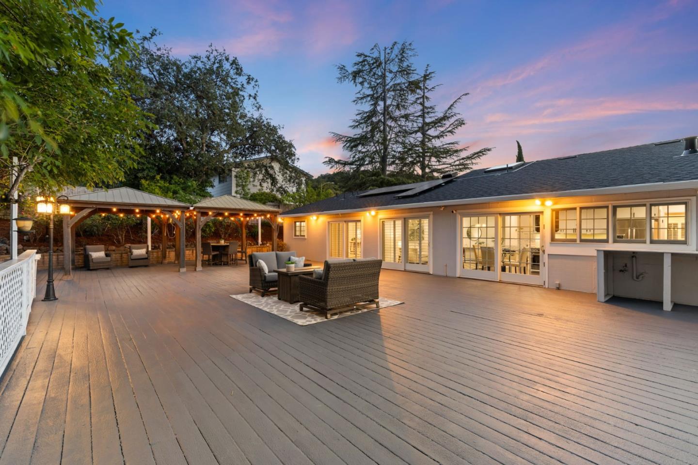 This is your chance to live in a beautifully updated home in the highly sought-after Almaden Valley, complete w/fabulous valley & city views! Situated near the top of Franciscan Way, the expansive deck is an outdoor oasis, offering abundant entertaining spaces and privacy. Enjoy two gazebos, a tranquil waterfall, lush foliage. The open, light-filled home design features a sep LR & DR, vaulted ceilings, skylights, recessed lighting, beautiful wood floors, & contemporary fixtures. The open kitchen is a culinary dream, equipped w/granite counters, tile backsplash, stainless steel appliances, breakfast bar, & ample cabinetry. Opens to the family room w/patio doors providing direct access to your incredible deck. Also on main level is your primary suite w/updated bathroom, and 2 add'l bedrooms & hall bath. A spacious lower level provides remarkable flexibility. Includes a bonus room with fireplace, a full bath, laundry room, and private entry, making it ideal as a guest suite, dedicated office, teen hang-out, or adaptable flex space. This home is designed for modern living with energy-efficient upgrades, including newer roof, gutters, HVAC system, and owned solar panels. Plus, 2-car att'd garage w/electric car charger. Located conveniently near top-rated schools, parks, and trails.