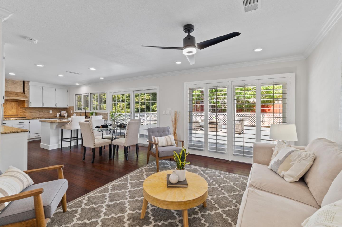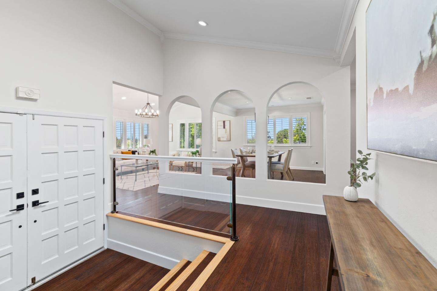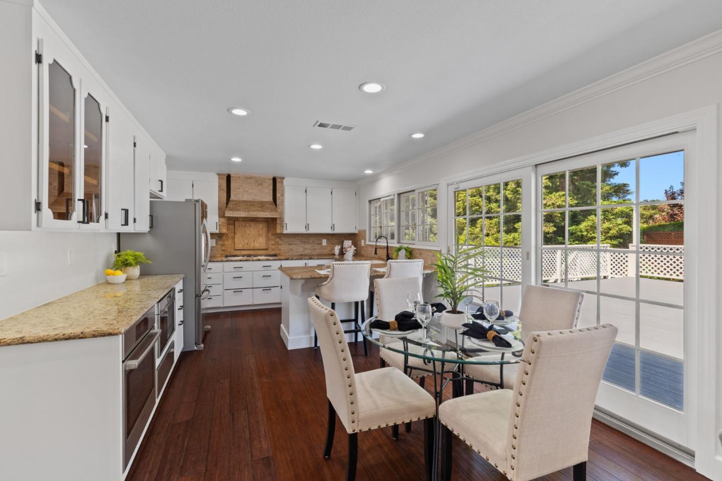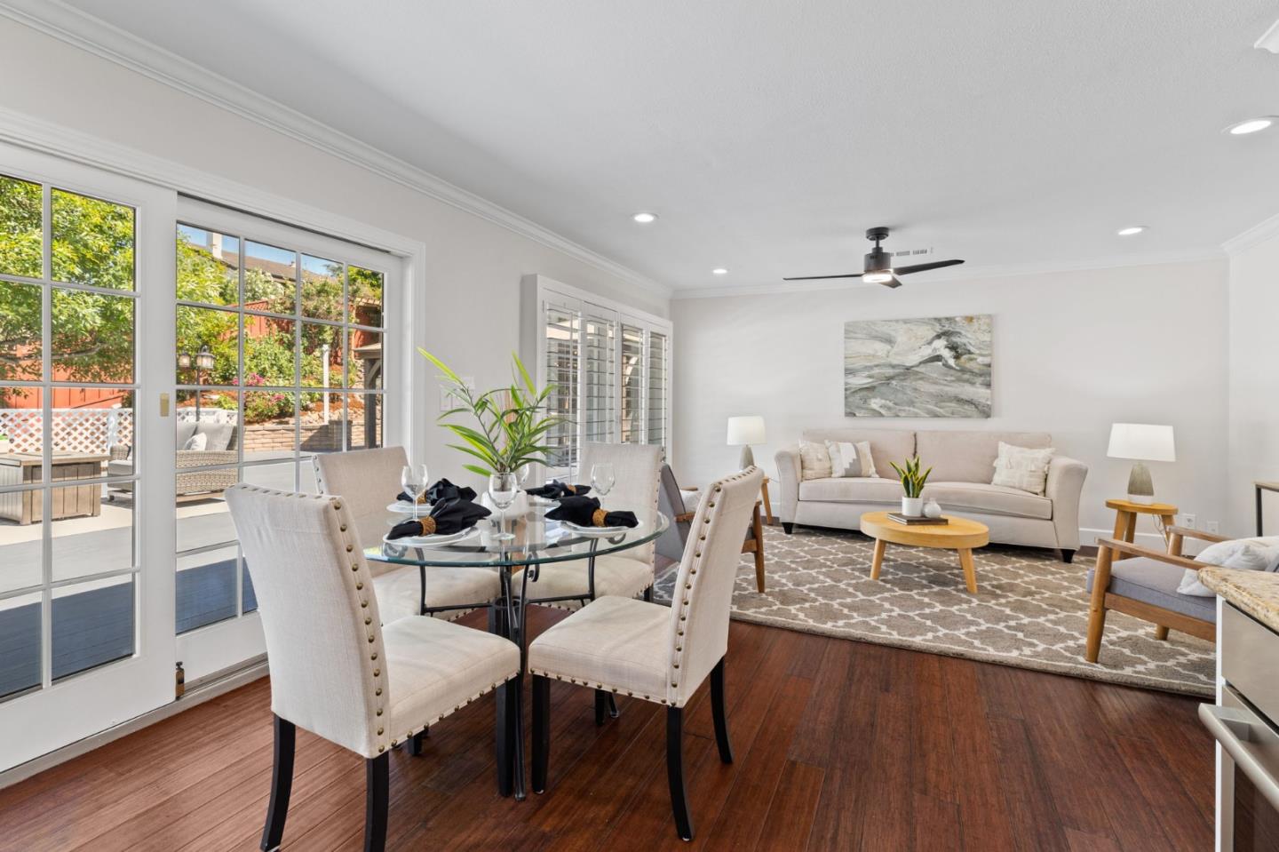 This is your chance to live in a beautifully updated home in the highly sought-after Almaden Valley, complete w/fabulous valley & city views! Situated near the top of Franciscan Way, the expansive deck is an outdoor oasis, offering abundant entertaining spaces and privacy. Enjoy two gazebos, a tranquil waterfall, lush foliage. The open, light-filled home design features a sep LR & DR, vaulted ceilings, skylights, recessed lighting, beautiful wood floors, & contemporary fixtures. The open kitchen is a culinary dream, equipped w/granite counters, tile backsplash, stainless steel appliances, breakfast bar, & ample cabinetry. Opens to the family room w/patio doors providing direct access to your incredible deck. Also on main level is your primary suite w/updated bathroom, and 2 add'l bedrooms & hall bath. A spacious lower level provides remarkable flexibility. Includes a bonus room with fireplace, a full bath, laundry room, and private entry, making it ideal as a guest suite, dedicated office, teen hang-out, or adaptable flex space. This home is designed for modern living with energy-efficient upgrades, including newer roof, gutters, HVAC system, and owned solar panels. Plus, 2-car att'd garage w/electric car charger. Located conveniently near top-rated schools, parks, and trails.