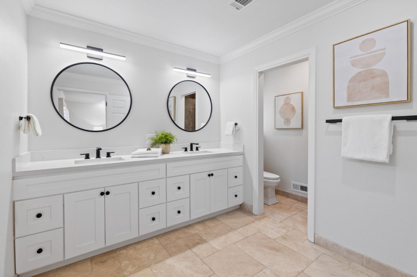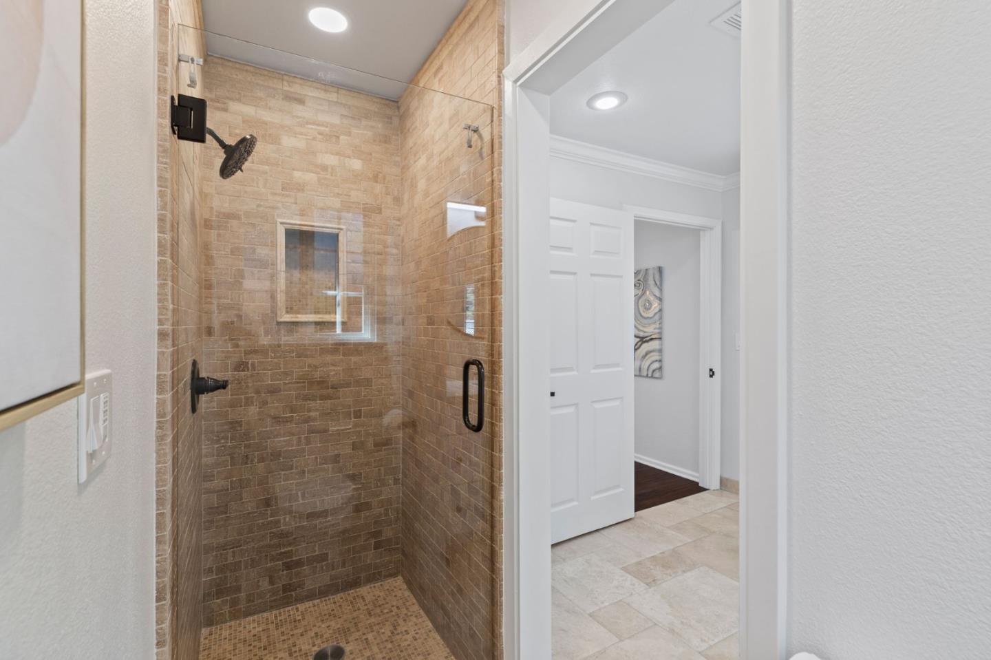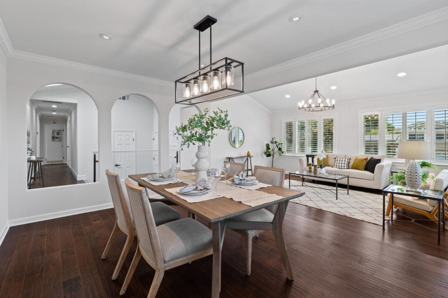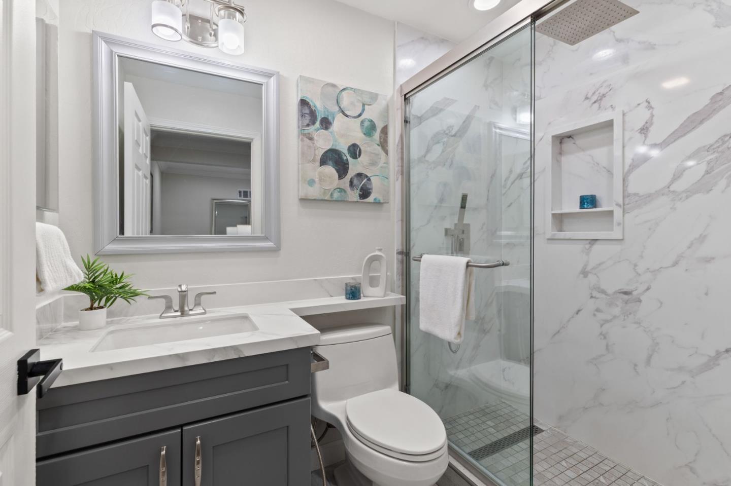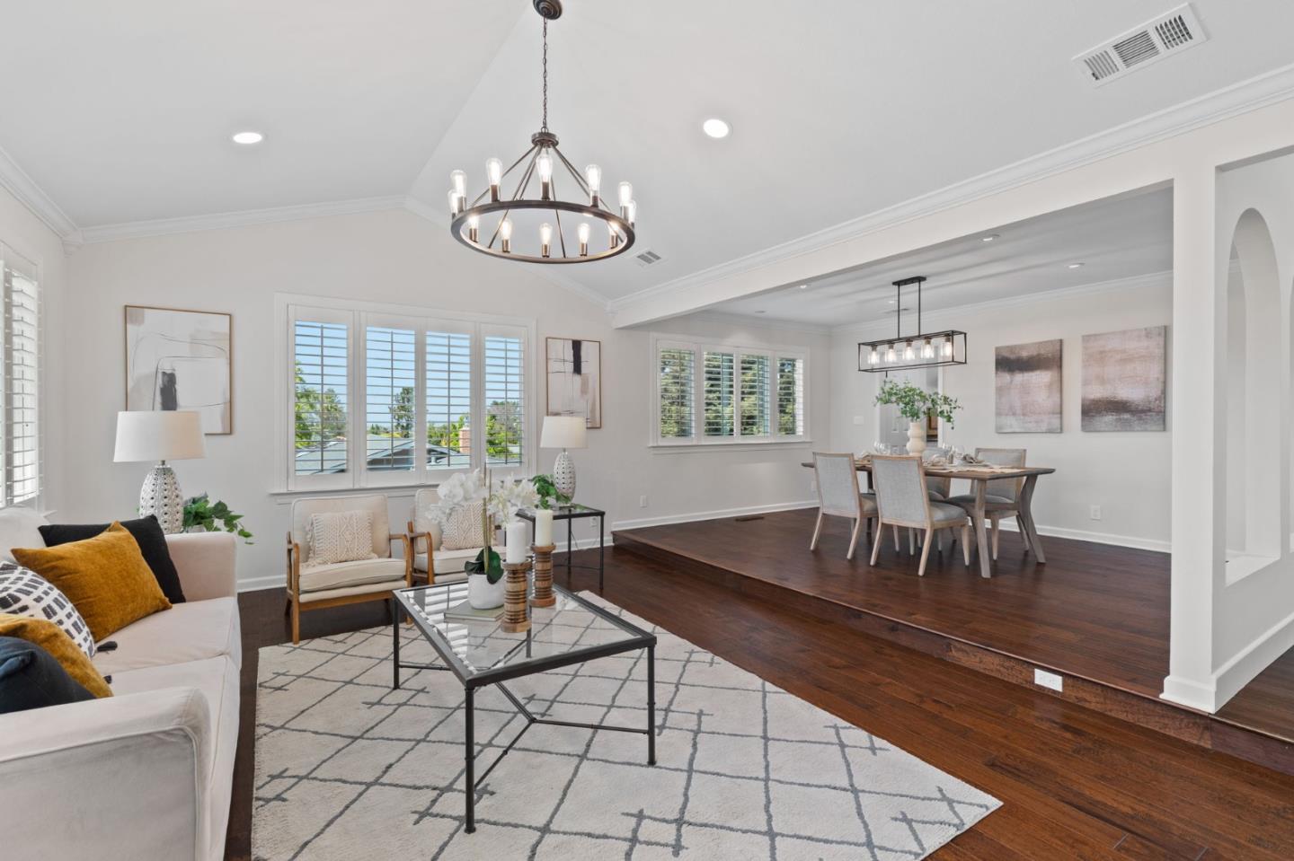 This is your chance to live in a beautifully updated home in the highly sought-after Almaden Valley, complete w/fabulous valley & city views! Situated near the top of Franciscan Way, the expansive deck is an outdoor oasis, offering abundant entertaining spaces and privacy. Enjoy two gazebos, a tranquil waterfall, lush foliage. The open, light-filled home design features a sep LR & DR, vaulted ceilings, skylights, recessed lighting, beautiful wood floors, & contemporary fixtures. The open kitchen is a culinary dream, equipped w/granite counters, tile backsplash, stainless steel appliances, breakfast bar, & ample cabinetry. Opens to the family room w/patio doors providing direct access to your incredible deck. Also on main level is your primary suite w/updated bathroom, and 2 add'l bedrooms & hall bath. A spacious lower level provides remarkable flexibility. Includes a bonus room with fireplace, a full bath, laundry room, and private entry, making it ideal as a guest suite, dedicated office, teen hang-out, or adaptable flex space. This home is designed for modern living with energy-efficient upgrades, including newer roof, gutters, HVAC system, and owned solar panels. Plus, 2-car att'd garage w/electric car charger. Located conveniently near top-rated schools, parks, and trails.